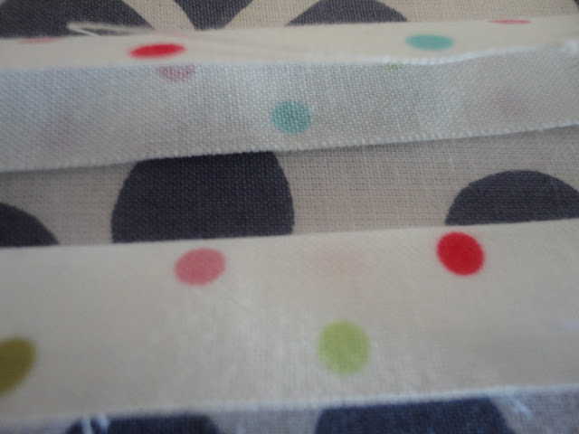 Como fazer esta fita de ligação. Dê espaço para dobrar as duas bordas. Cobrir apenas um lado do fecho com a fita de ligação. Assim: