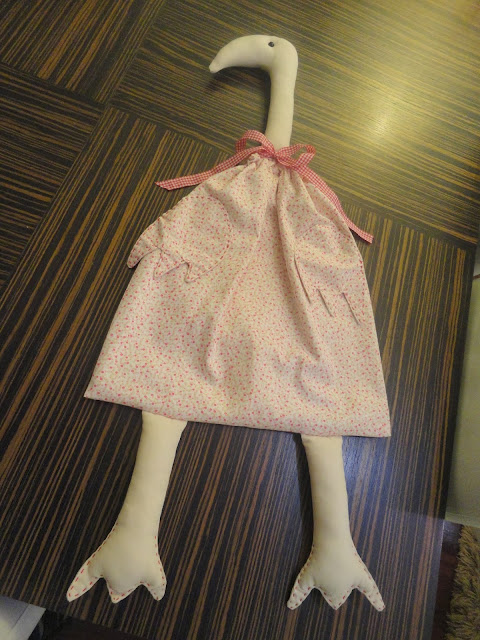 Mais um PYJAMAS BAG, outra das opções para os meus presentes de natal. Este direcionados a meninas. Como tal foi escolhido um tecido mais femenino (floral miudinho). Para o forro um tecido em crú que também foi usado para as pernas cabeça e pescoço.